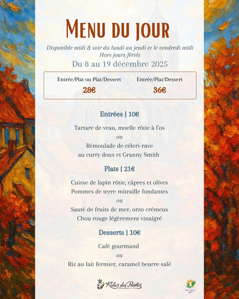 Pour un repas en famille, avec vos amis ou vos collègues, pour célébrer un évènement particulier un anniversaire, une réussite professionnelle, un mariage ou juste partager un moment de convivialité, venez vivre ces moments au Relais des Peintres.
