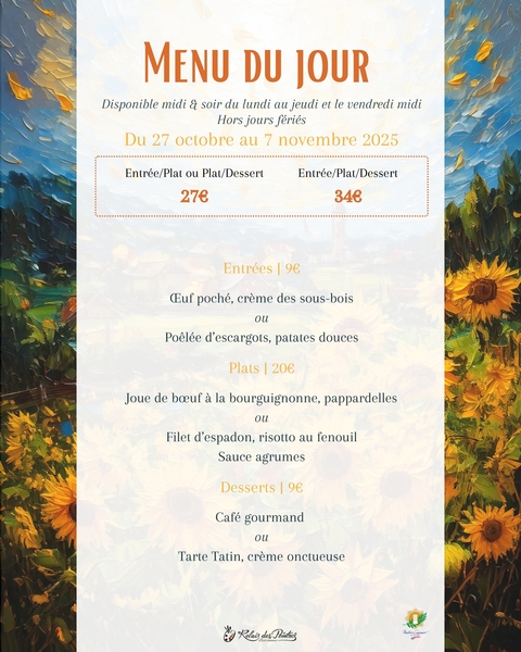 📅 Servi du lundi au vendredi midi (hors jours fériés) jusqu’au 7 novembre inclus.